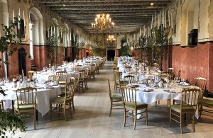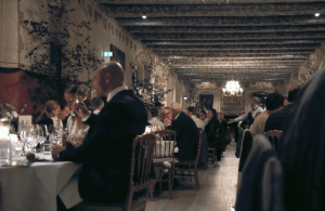 129 forventningsfulde og glade gæster satte sig til bords, ved de smukt opdækkede borde i Riddersalen.