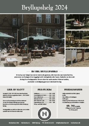Tilbring den store dagen med venner og familie med bryllup i et slott på Fyn i Danmark. Ved Holckenhavn Slott har vi 15 års erfaring med å skreddersy slottsbryllup etter spesielle ønsker og behov, slik at deres bryllup blir en enestående opplevelse. Vi tilbyr vielse i Holckenhavns egen slottskirke, og fest i selve slottet.